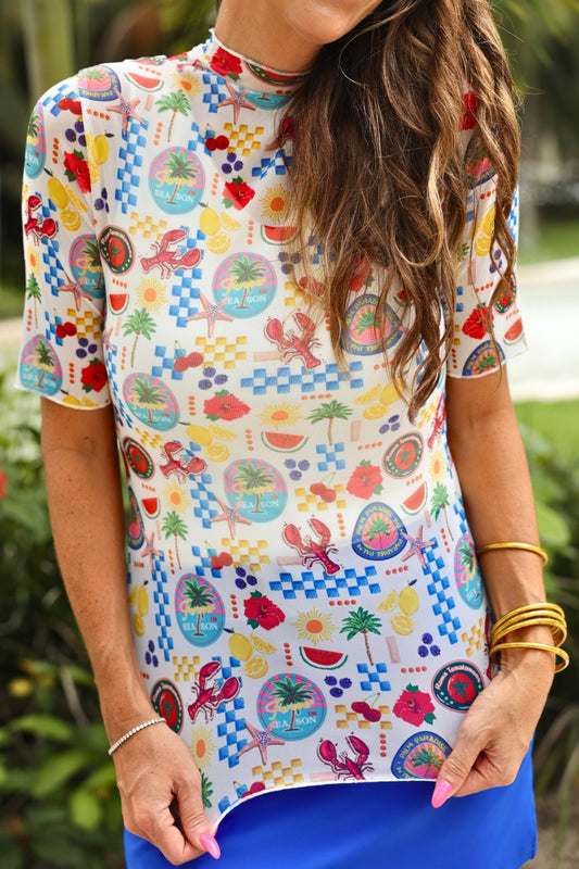 PREORDER- Kora Short Sleeve Mesh Top- Amalfi Mood