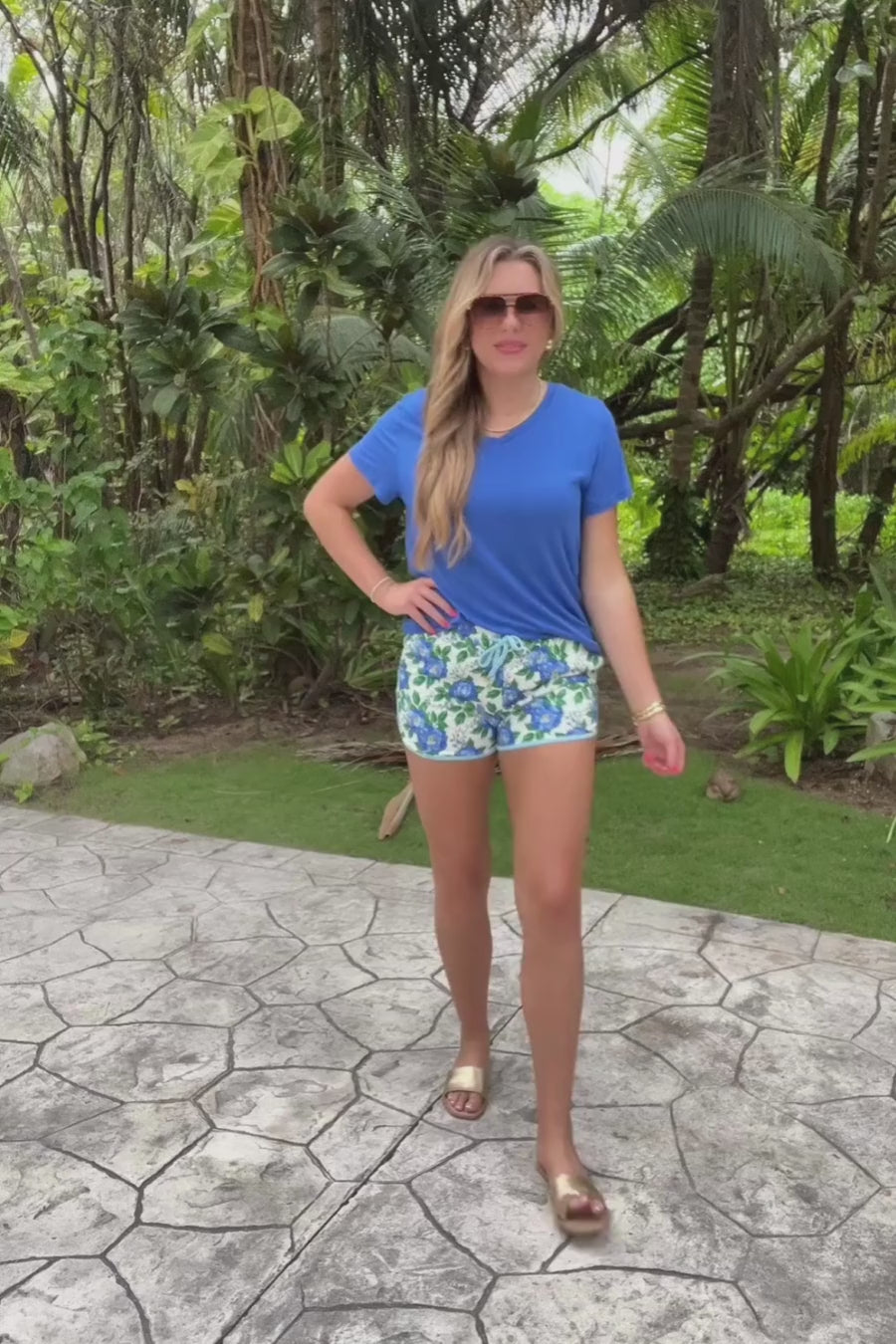 Get ready to bloom in comfort with these Caroline Floral Everyday Shorts! Featuring a large blue floral print, they bring a fresh and fun vibe to your casual wardrobe. Perfect for lounging or summer strolls, these shorts combine playful style with everyday ease.