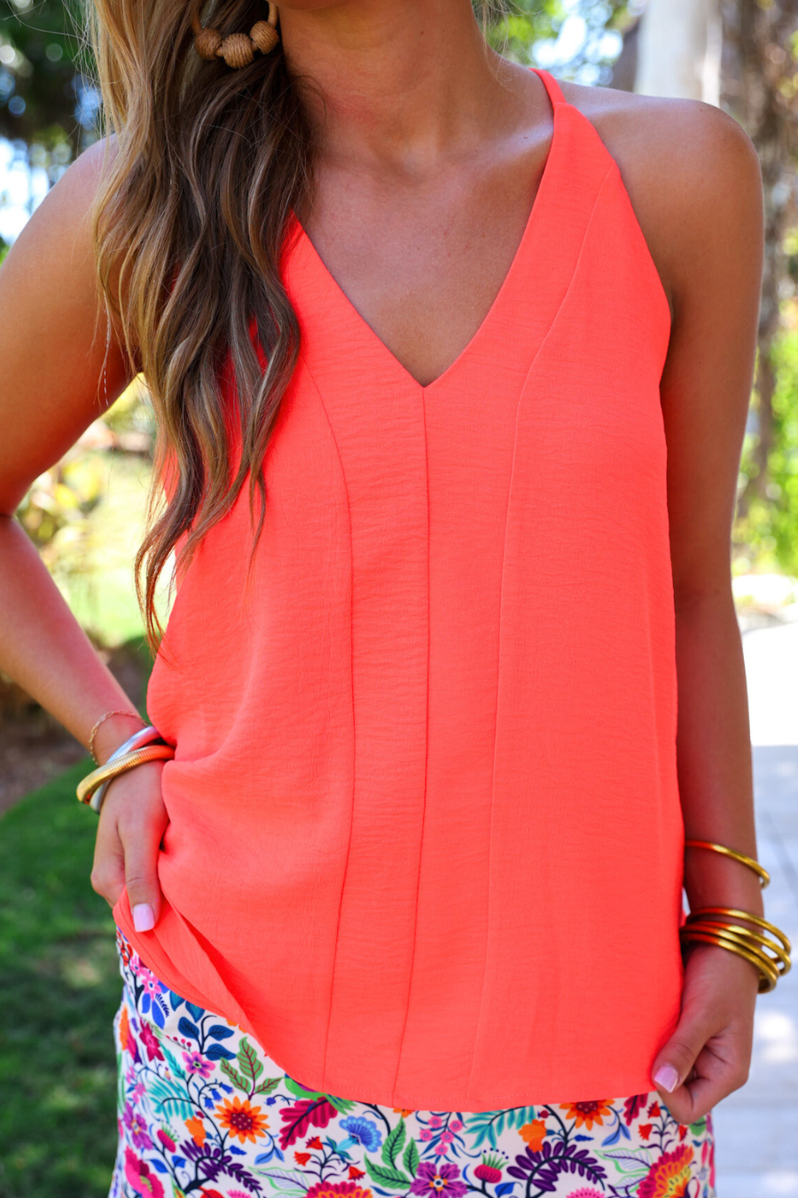 This classic racerback cami tank is so chic. It features a comfortable woven fabric with a v-neck neckline style, lining, & spaghetti racerback straps. This is the perfect cami tank to wear under all your cardigans & kimonos. This is definitely a must-have in your closet!