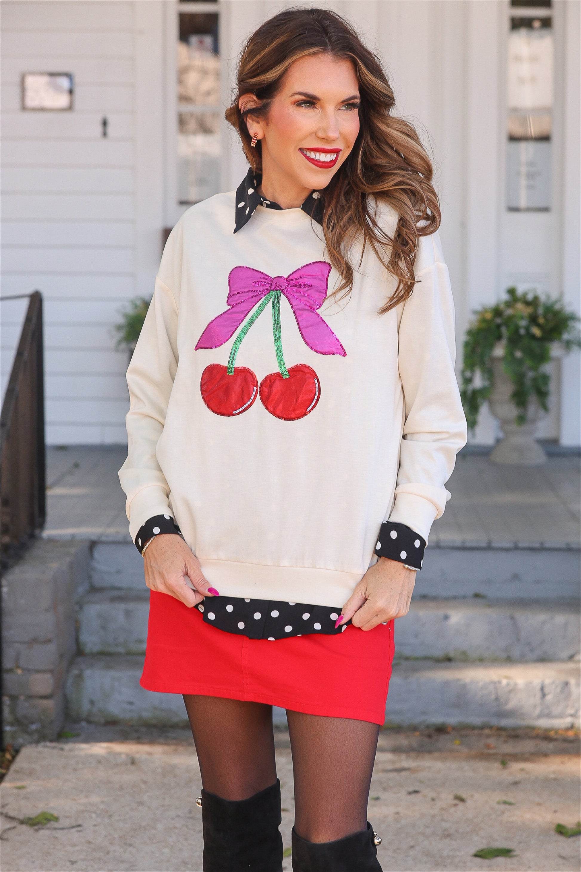 | PREORDER- Cherry Bow Luxe Pullover |