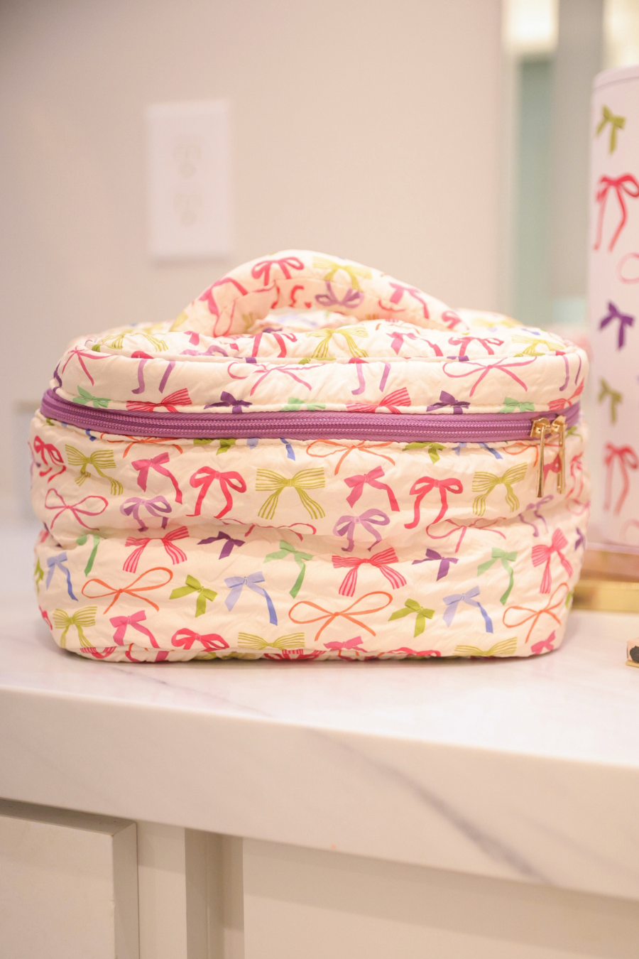 Meet the Jetsetter Quilted Bag, your travel ready essential for staying organized on the go. Designed with a structured silhouette, it features a quilted body for added durability and softness, a secure zip-around closure to keep contents in place, and a top handle for easy carrying. Spacious enough to hold beauty essentials, toiletries, or small accessories, this versatile bag is perfect for both everyday use and getaways.