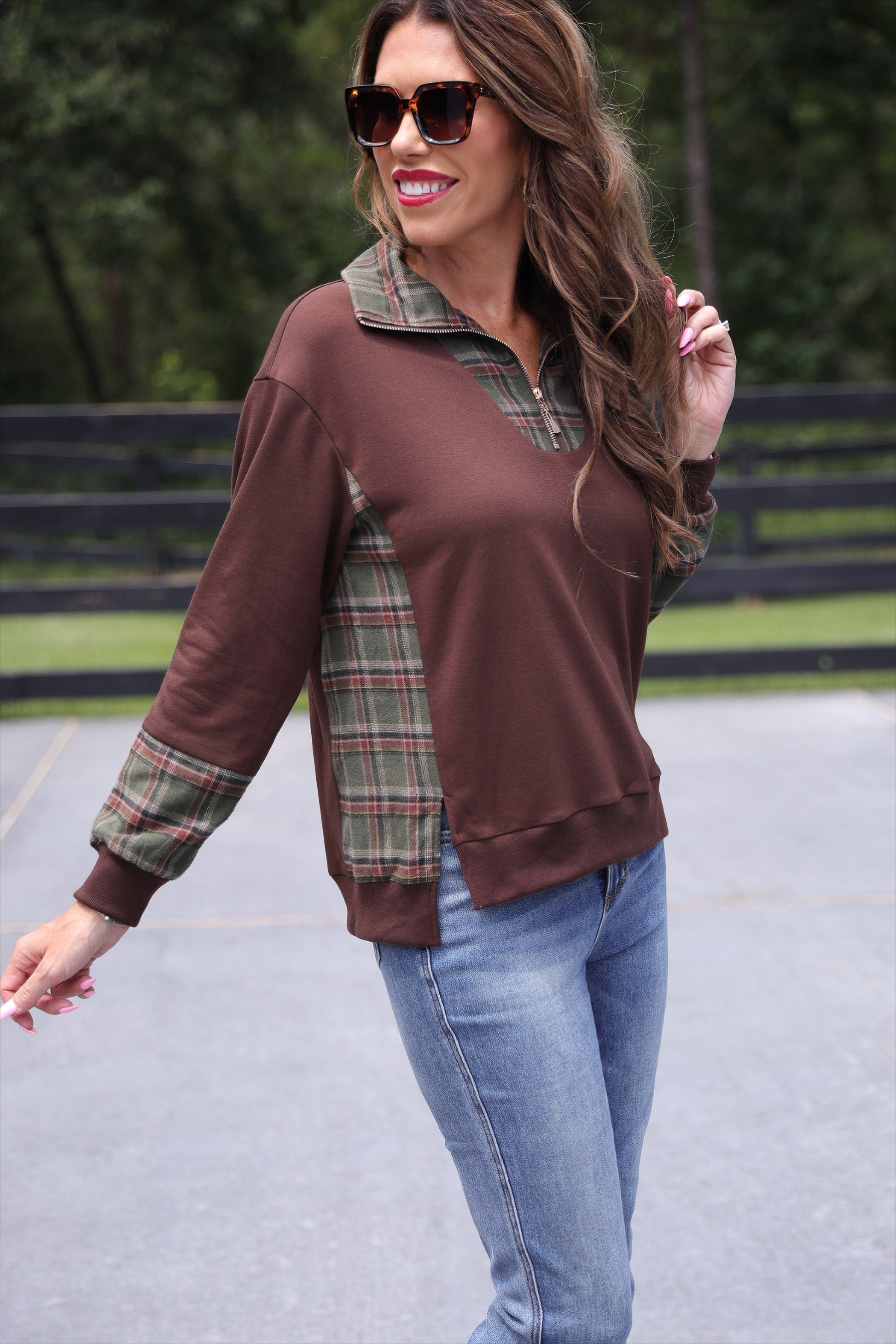 PREORDER- Juniper Plaid Pullover- Chocolate |