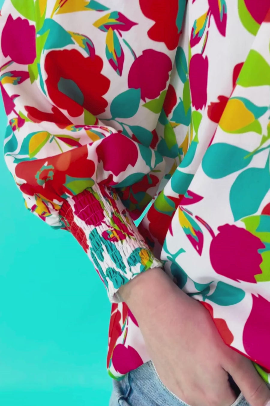 Introducing the Katie Button Up Blouse! This stunning floral blouse has gorgeous details including smocking at the wrists, a button down front, and pleats at the neckline and back. With its playful yet elegant design, this blouse is sure to turn heads and make a statement. Get ready to bloom in style!