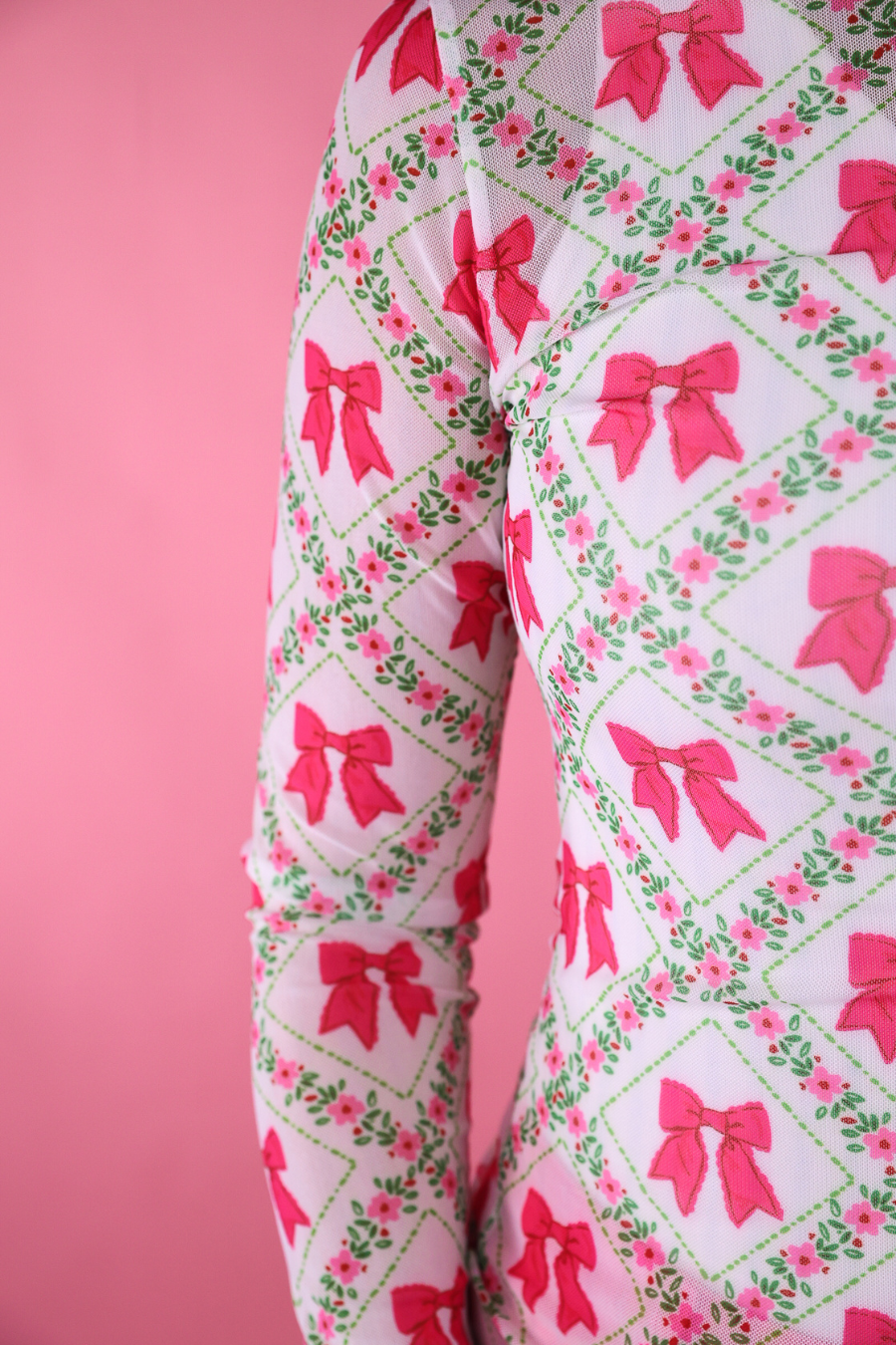 | Keigan Mesh Top- Pretty Lattice Bow |