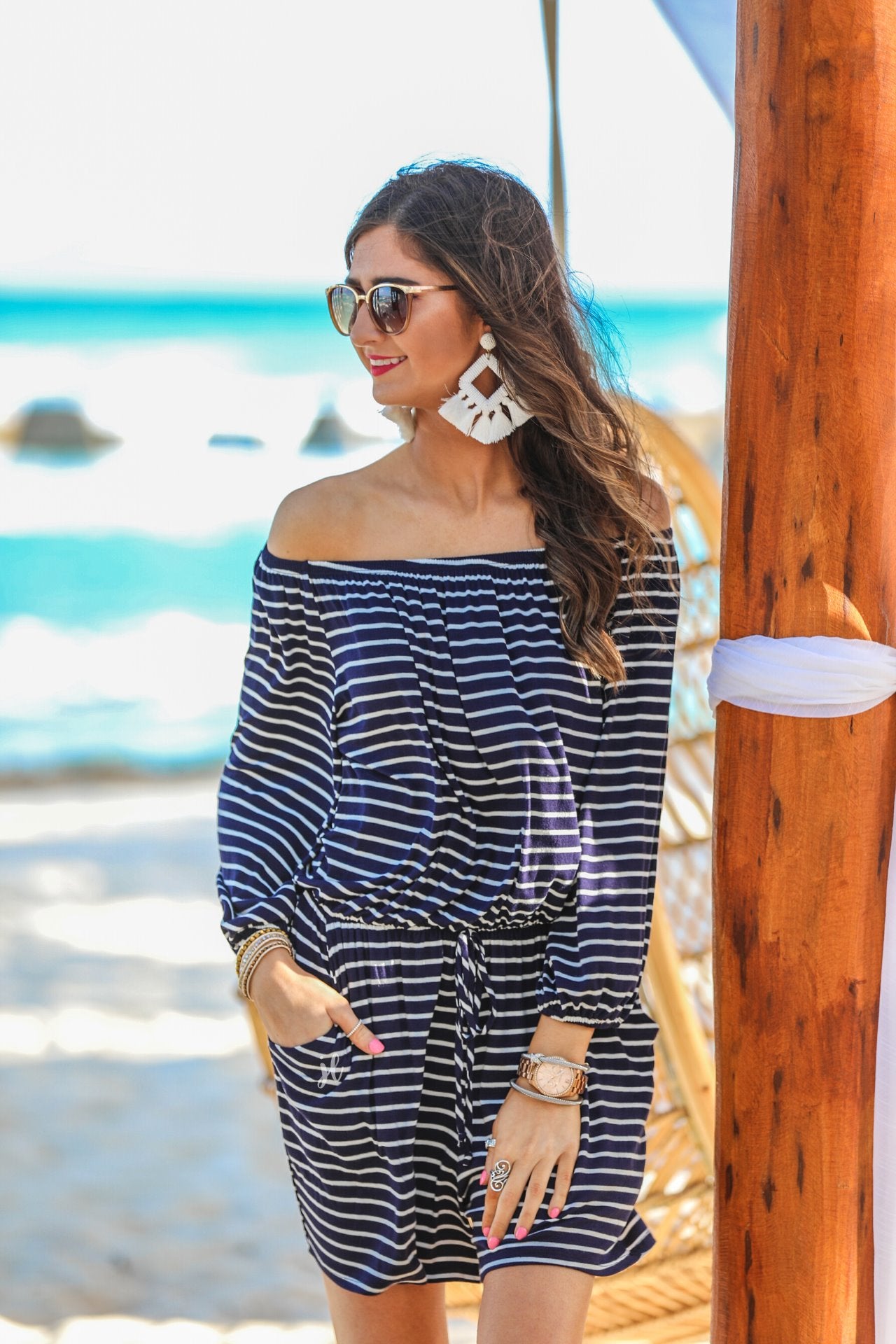 | Laguna Beach Striped Off The Shoulder Romper |