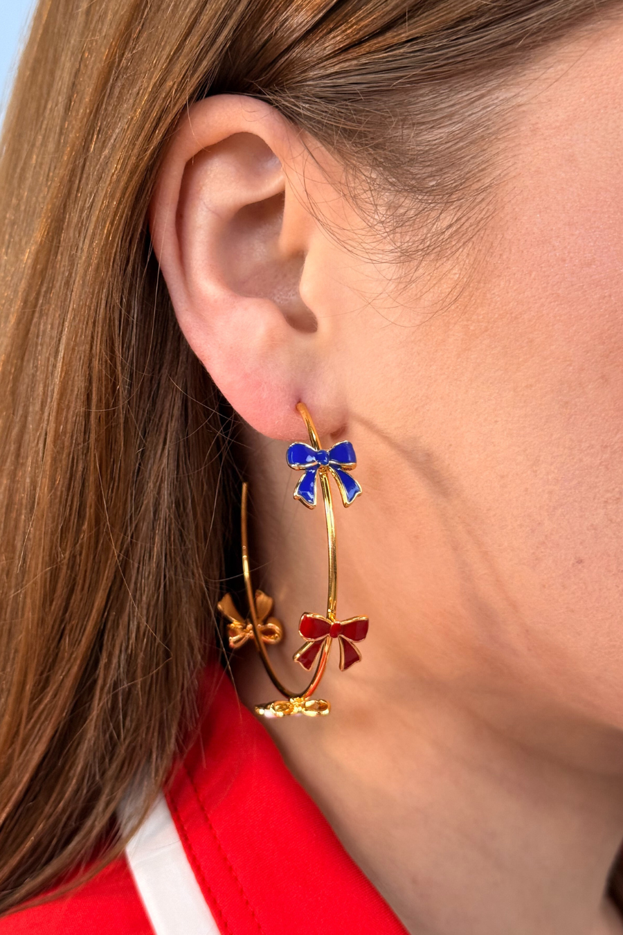Embrace the bow-mania trend with these must-have earrings. With stunning bow details and classic hoop design, these earrings are the perfect combination of elegance and playfulness.