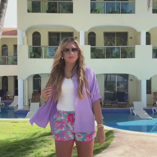 Bring tropical vibes to your everyday look with these Paradise Palms Everyday Shorts. Featuring a playful multi-color palm leaves pattern, they're perfect for adding a splash of fun to your warm-weather wardrobe. Lightweight and comfy, these shorts make lounging or strolling feel like a mini vacation. Get ready to preorder your ticket to paradise!